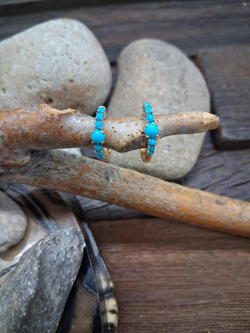 14 KT Gold Sleeping Beauty Turquoise Inlay Small Hoop Earrings