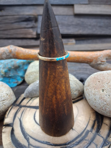 14 KT Gold with Sleeping Beauty Turquoise Inlay with Diamonds in a Size 7 Ring. All jewelry is handcrafted by Indigenous Artists.  Dimensions: S...