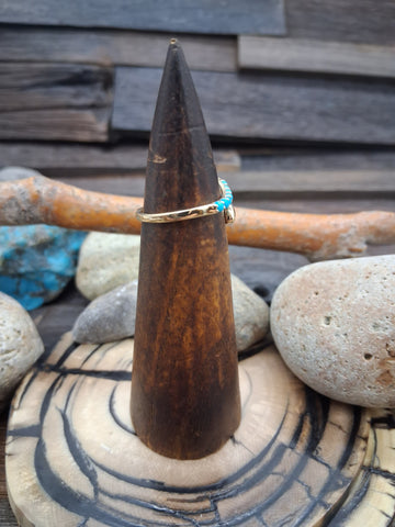 14 KT Gold with Sleeping Beauty Turquoise in a Snake Band Ring that's slightly Adjustable. All jewelry is handcrafted by Indigenous Artists.  Di...