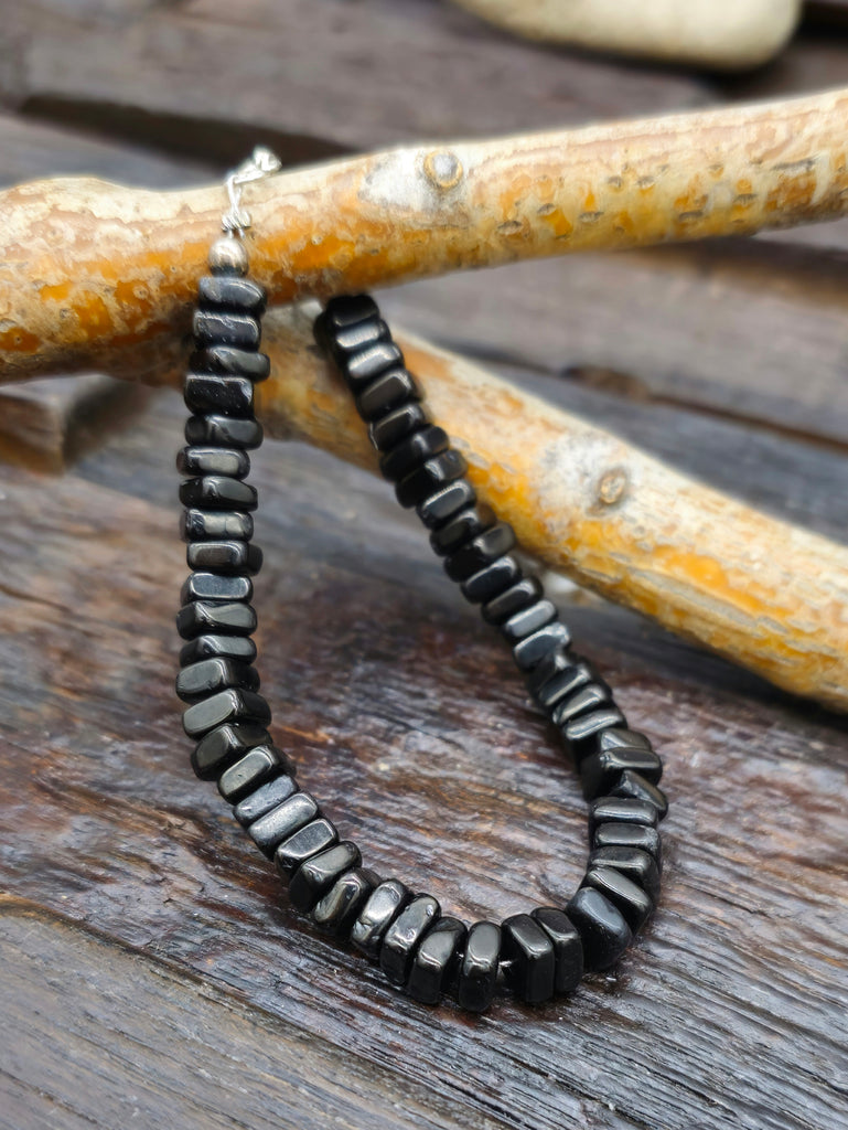 Jet Stone Bead Bracelet. All jewelry is handcrafted by Indigenous Artists. Individual stones may vary.  Dimensions: Length - 8 in.