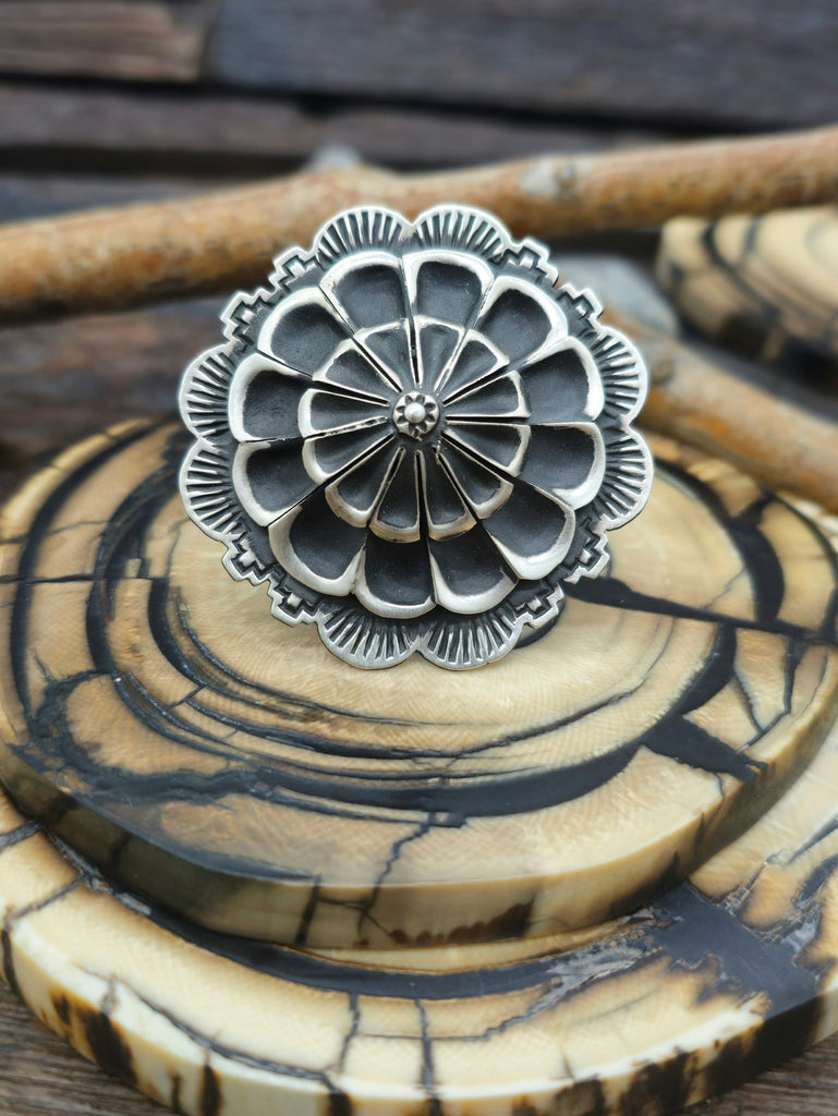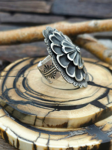 Handmade sterling silver ring made by Navajo artist Leander Tahe. Individual stamp work will vary. All jewelry is handcrafted by Indigenous Artists...