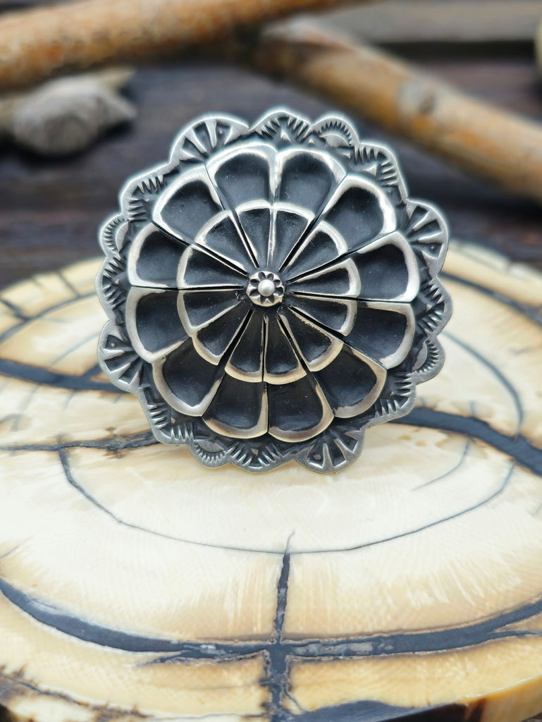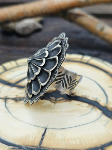 Handmade sterling silver ring made by Navajo artist Leander Tahe. Individual stamp work will vary. All jewelry is handcrafted by Indigenous Artists...