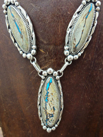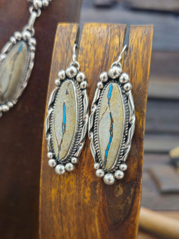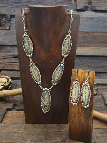Blue Gem Boulder Turquoise Lariat Necklace and Earring Set by Navajo silversmith Rosella Paxton. All jewelry is handcrafted by Indigenous Artists. ...