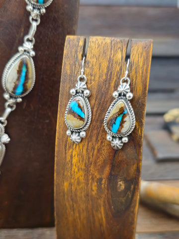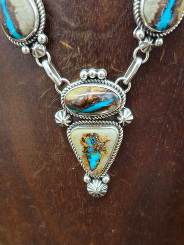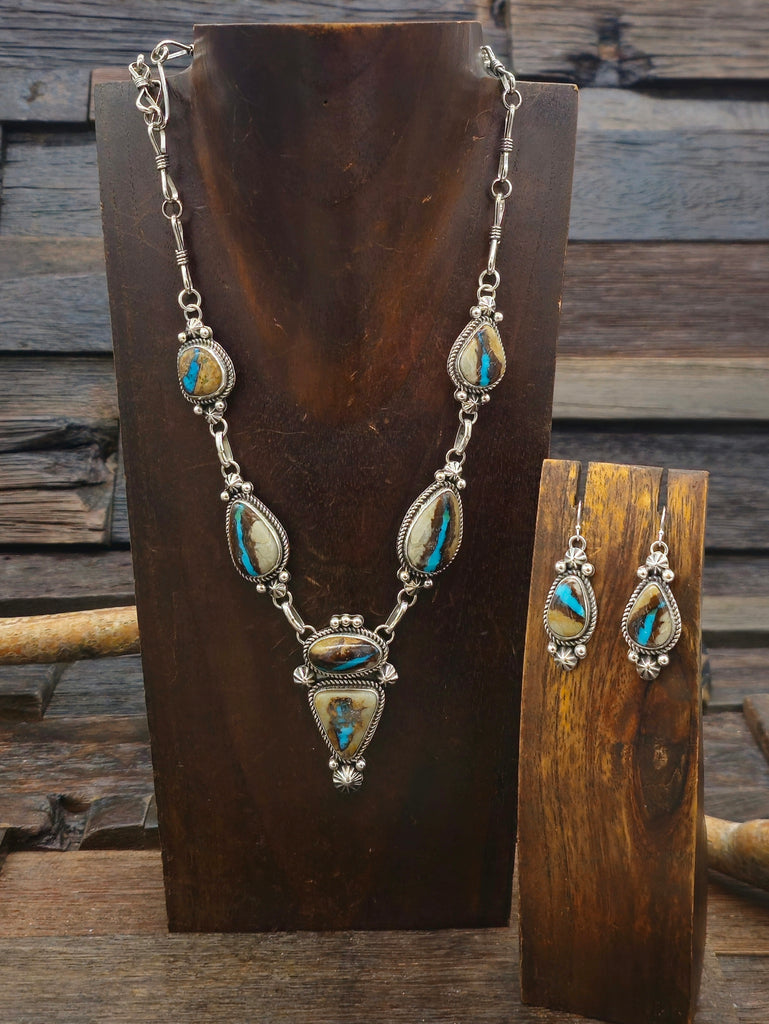 Blue Gem Boulder Turquoise Lariat Necklace and Earring Set by Navajo silversmith Rosella Paxton. All jewelry is handcrafted by Indigenous Artists. ...