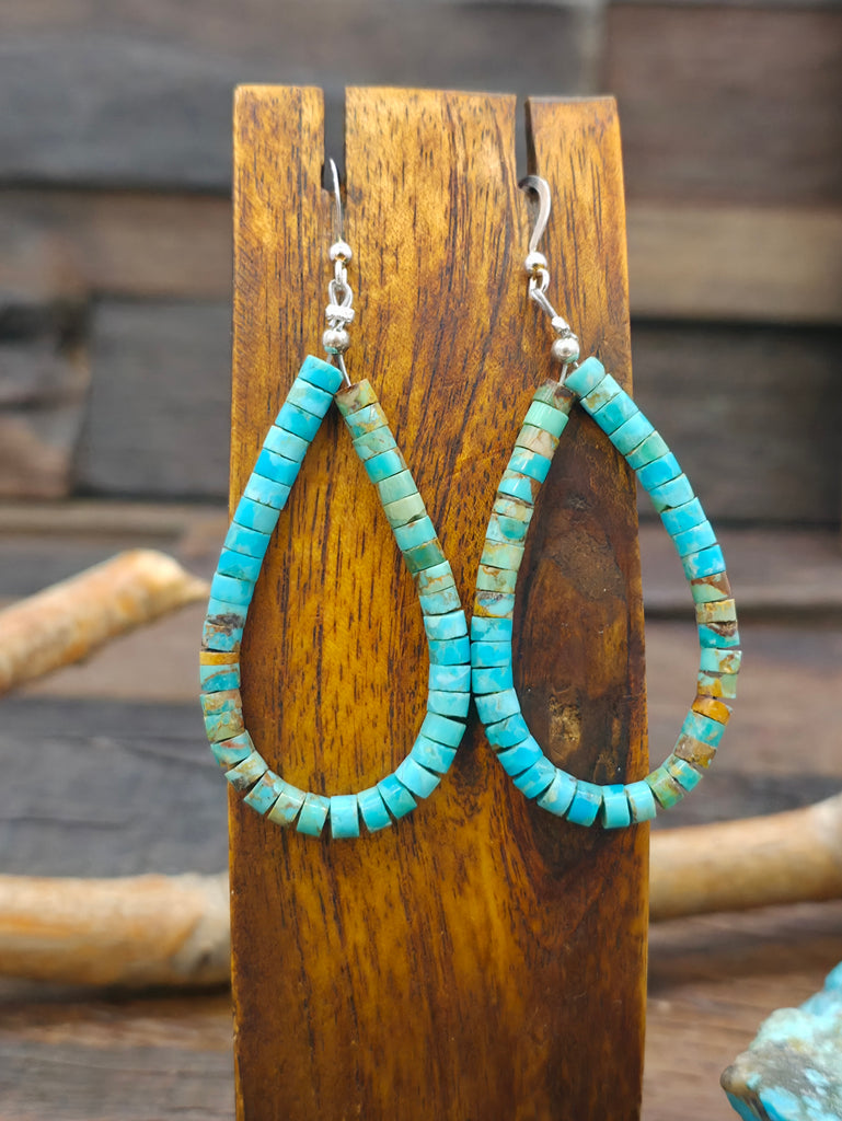 Blue/Green Turquoise Heishi Loop Earrings by Fred Archuleta