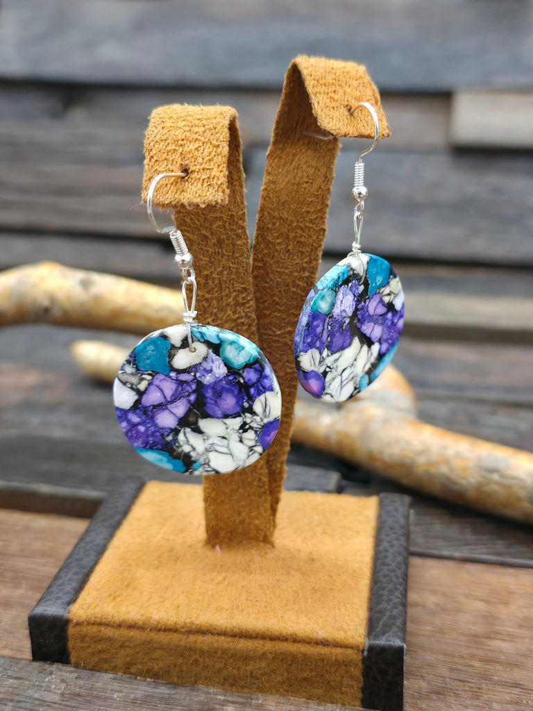 Blue/Purple Dyed Composite Round Slab Earrings  by Santo Domingo jewelry artist Robert Crespin. All jewelry is handcrafted by Indigenous Artists. ...