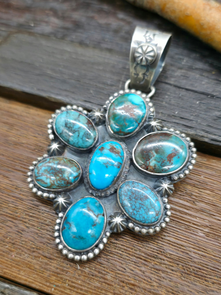 Blue Turquoise Cluster Pendant by Rosella Paxton
