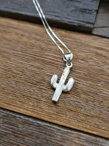 Blue Turquoise Inlay Cactus Pendant on 18 in. Sterling Silver Chain by Jane Francisco
