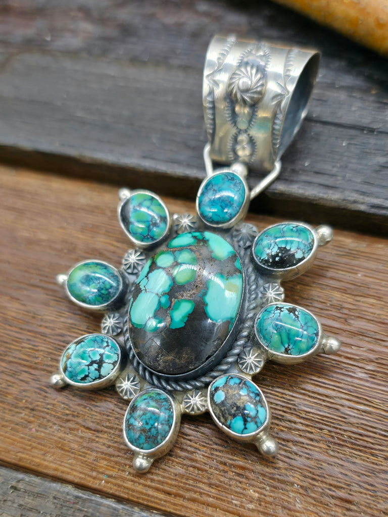 Blue Turquoise Oval Cluster Pendant by Navajo silversmith Rosella Paxton. Individual stones and coin years may vary. All jewelry is handcrafted by ...