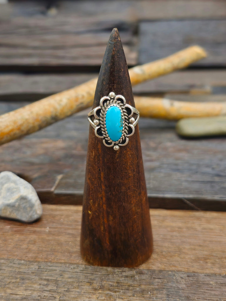 Blue Turquoise Sterling Silver Ring by Navajo silversmith Priscilla Smith. All jewelry is handcrafted by Indigenous Artists. Individual stones will...