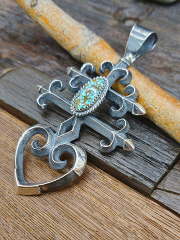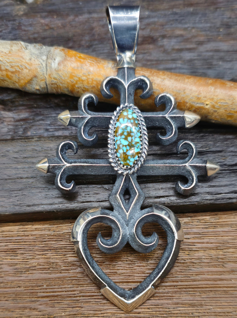Cast Sterling Silver and Turquoise Pendant by Navajo Silversmith M. Jim. All jewelry is handcrafted by Indigenous Artists. Individual stones will v...