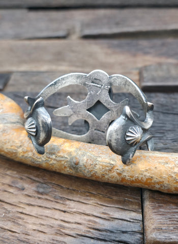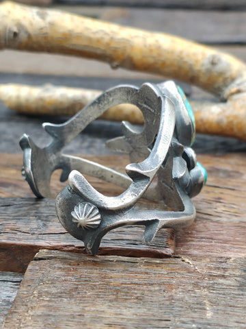 Cast Sterling Silver Two Stone Sonoran Turquoise Cuff All jewelry is handcrafted by Indigenous Artists.  Dimensions: Interior Circumference - 5 ...