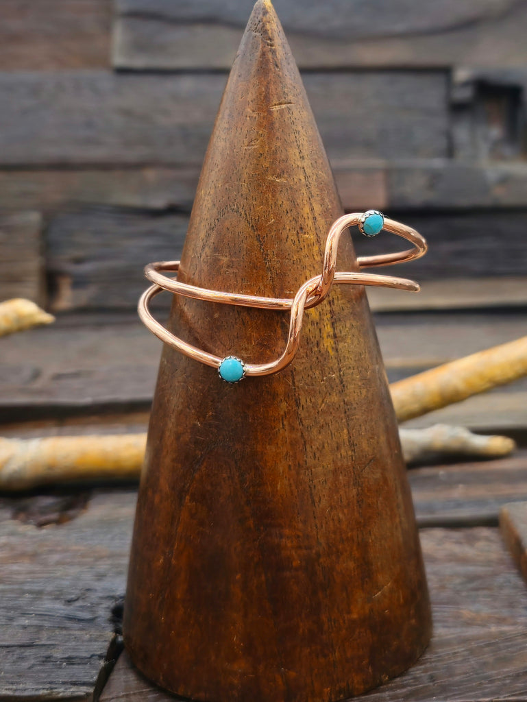 Split double shank twist wire bracelet with 2 small pieces of turquoise. Handmade by Navajo Artist Yolonda Skeets.