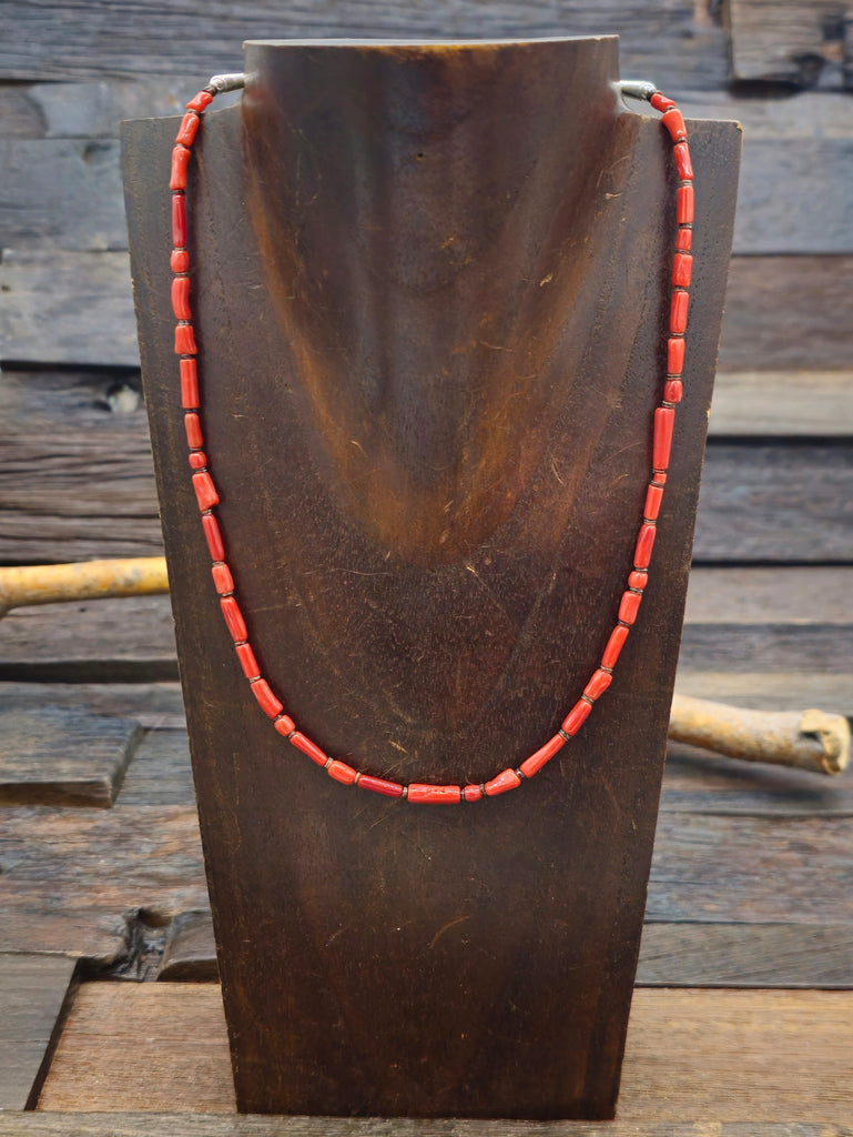 Coral and Heishi Necklace by Melvin Masquat - 16 in. plus 2 in. extender