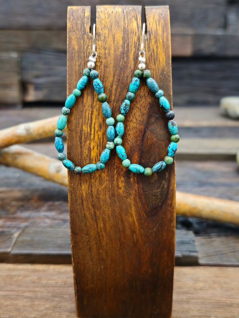 Dark Blue Turquoise Stone Bead Loop Earrings