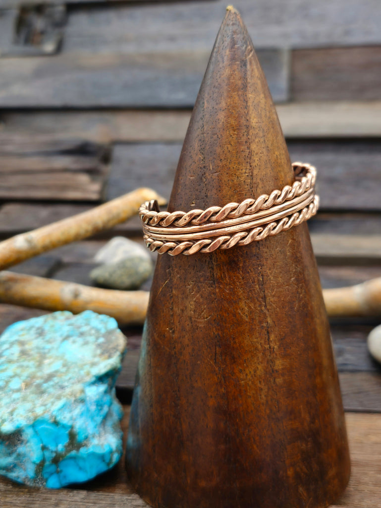 Navajo-made Copper Twisted Cuff. All jewelry is handcrafted by Indigenous Artists.  Dimensions: Internal Circumference - 6 in. including gap.