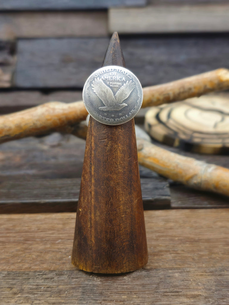 Eagle Quarter Ring.  Individual coins may vary. All jewelry is handcrafted by Indigenous Artists.  Dimensions: Diameter - 1 in.  Size - 5 1/2