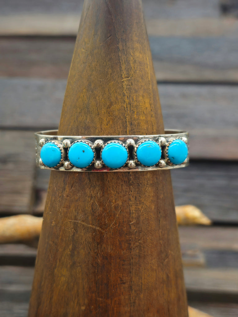 Five Stone Turquoise and Sterling Silver Cuff by Joann Spencer