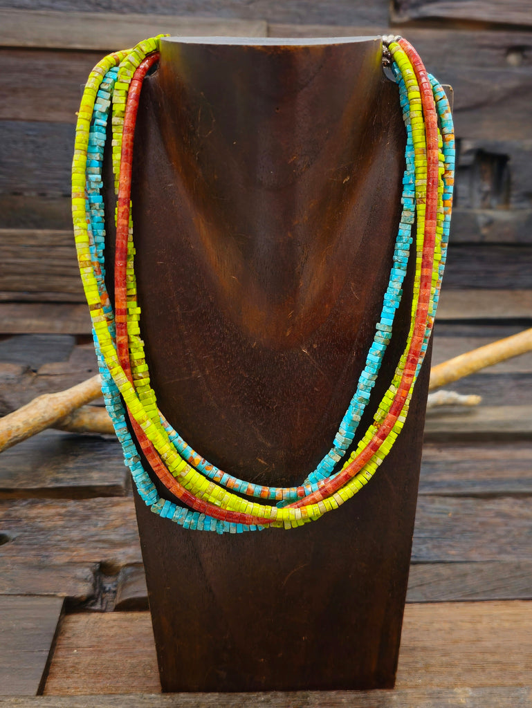 Five Strand Green and Blue Turquoise and Sponge Coral Stone Bead Necklace. All jewelry is handcrafted by Indigenous Artists.  Dimensions: Length...