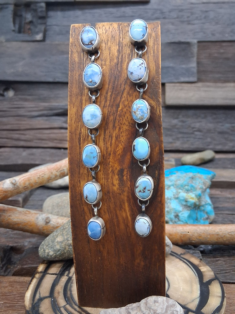 Golden Hill Long Earrings Sterling Silver Post. Made by an Unknown Native Silversmith.  All jewelry is handcrafted by Indigenous Artists.   Dime...