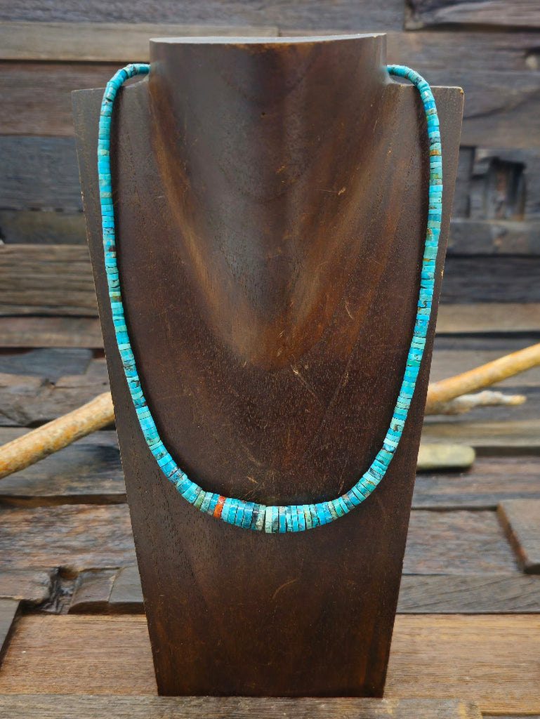 Graduated Blue Turquoise Heishi and Spiny Necklace 18 in.