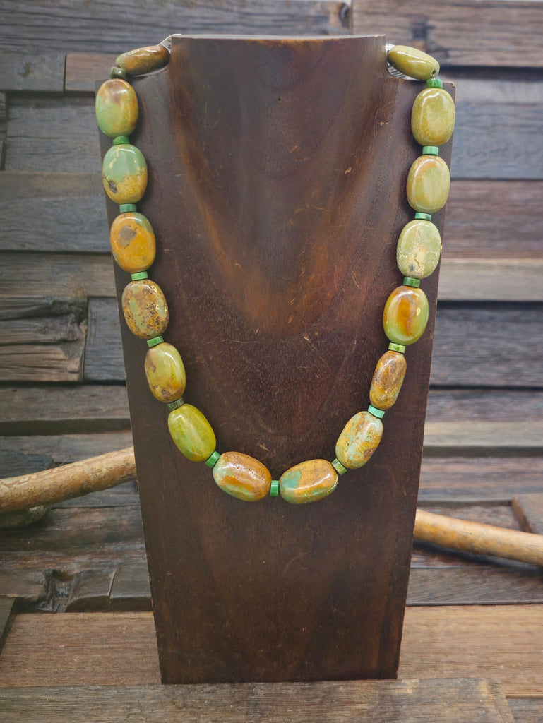 Green Sky Horse Turquoise Large Nugget Necklace. All jewelry is handcrafted by Indigenous Artists.  Individual stones will vary.  Dimensions: Le...