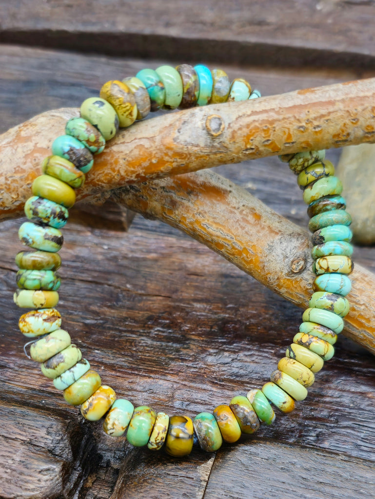 Green Sky Horse Turquoise Stretch Bracelet. All jewelry is handcrafted by Indigenous Artists. While the elastic is strong on these bracelets, pleas...