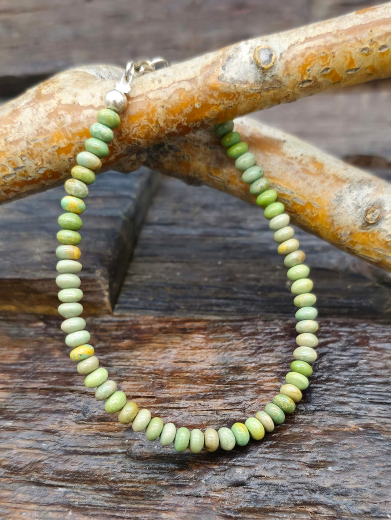 Green Turquoise Bead Bracelet. All jewelry is handcrafted by Indigenous Artists. Individual stones will vary.  Dimensions: Length - 7 in.