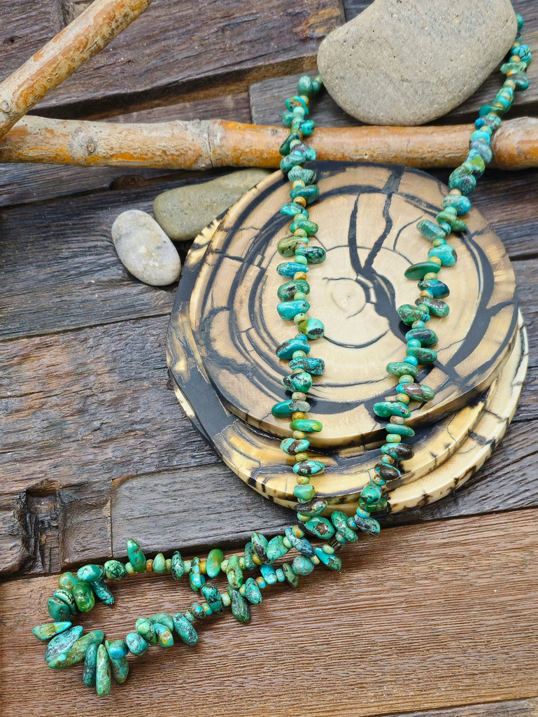 Green Turquoise Bead Necklace. All jewelry is handcrafted by Indigenous Artists.  Dimensions: Length - 28 in