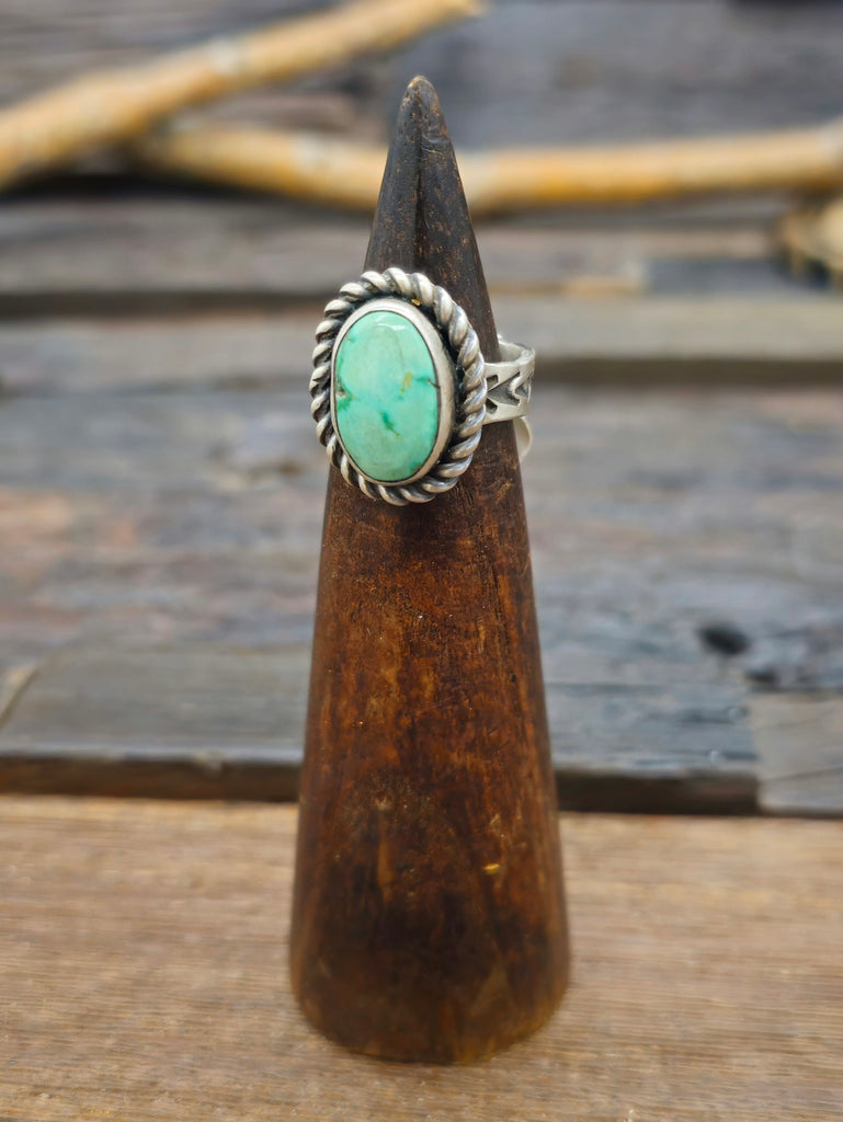 Green Turquoise Sterling Silver Ring with Stamped Shank - Size 6