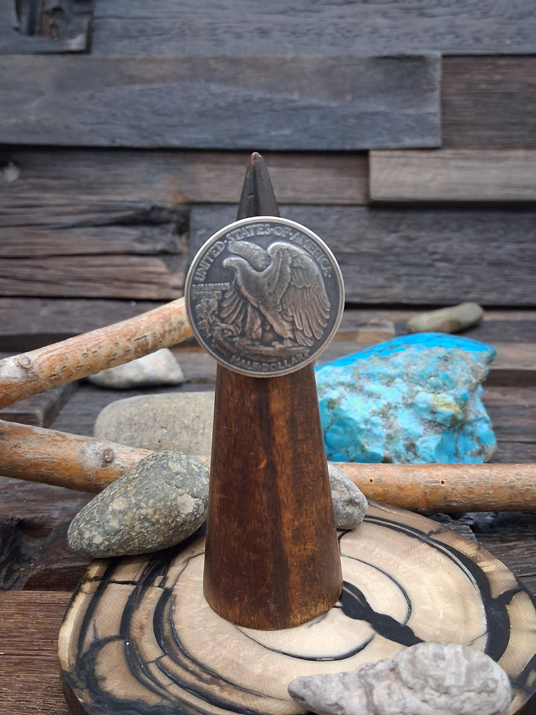 Half Dollar Coin Silver Ring by Lawrence Archuleta Size 6.75