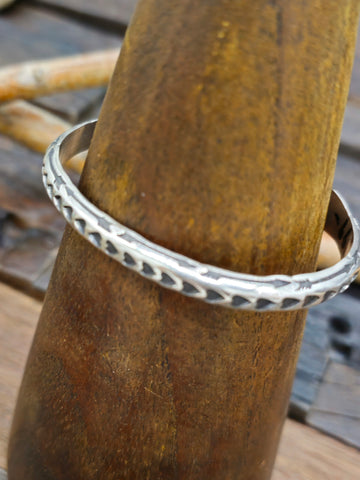 Stamped Sterling Silver Cuff by Navajo silversmith Sunshine Reeves.  Individual stamp work will vary. All jewelry is handcrafted by Indigenous Arti...