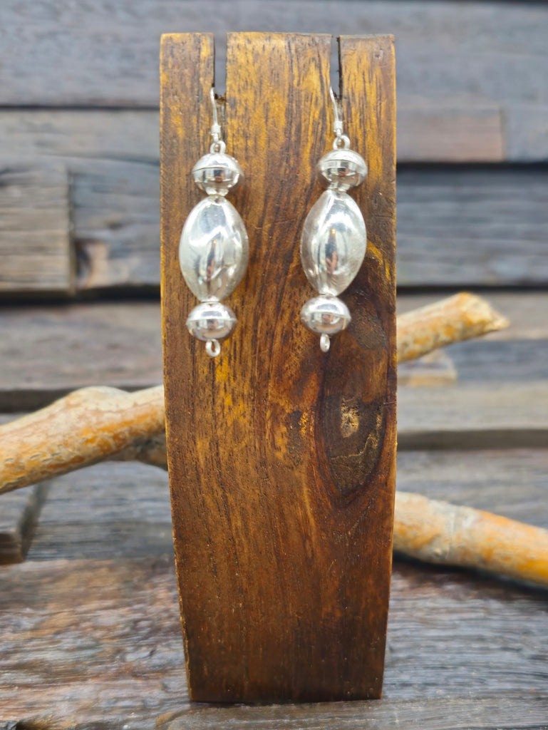 Oxidized Sterling Silver Bead Earrings by Navajo silversmith Preston Haley. All jewelry is handcrafted by Indigenous Artists.  Dimensions: Lengt...