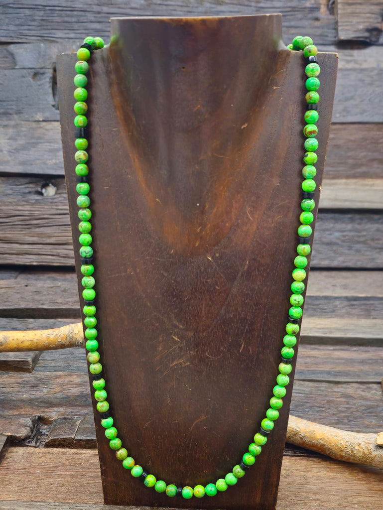 Hubei Turquoise and Jet Stone Bead Necklace - 28 in.