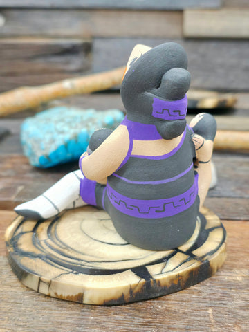Jemez Storyteller Figurine with Two Children and Book, made by D. Lucero.  All pottery art is handcrafted by Indigenous Artists.  Dimensions: 3 ...