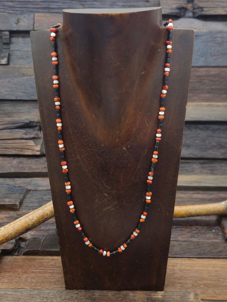 Jet, Mother of Pearl, and Sponge Coral Necklace by Dave Reano - 20 in.