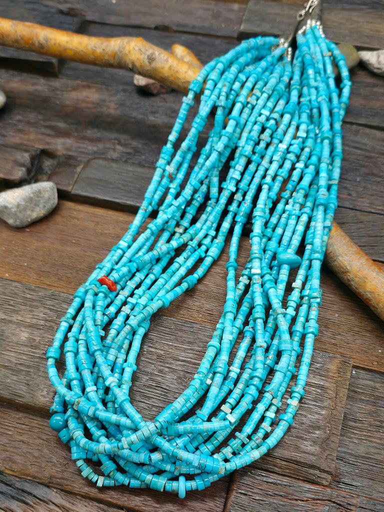 Turquoise Heishi and Sterling Silver Necklace by Fred Archuleta - 26 in