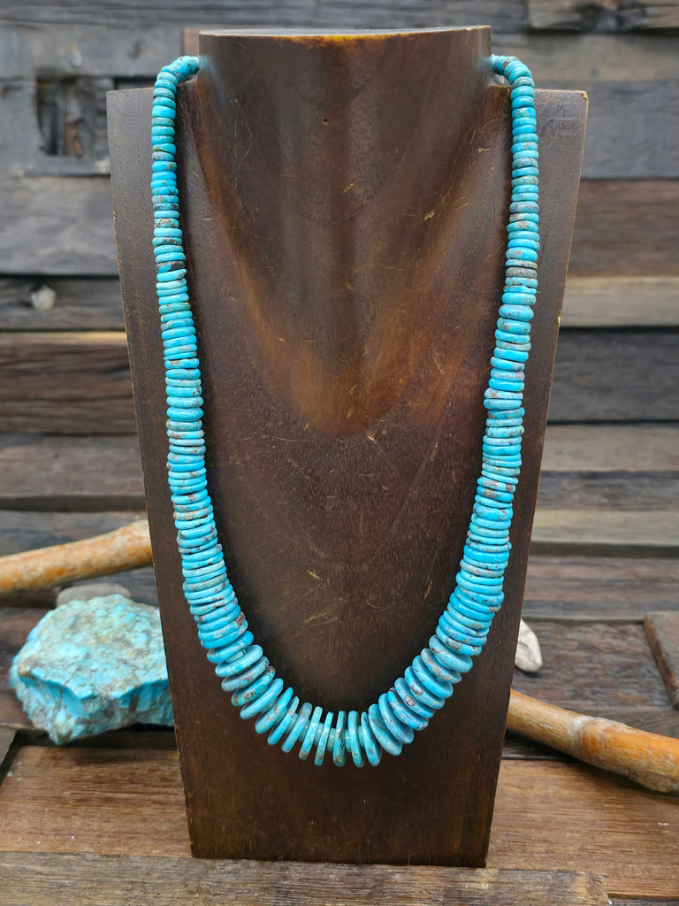 Kingman Turquoise Graduated Bead Necklace.  Individual stones will vary.  All jewelry is handcrafted by Indigenous Artists.  Dimensions: length ...