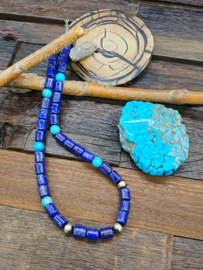 Lapis Lazuli and Turquoise Stone Bead Necklace, All jewelry is handcrafted by Indigenous Artists.  Dimensions: Length - 22 in.