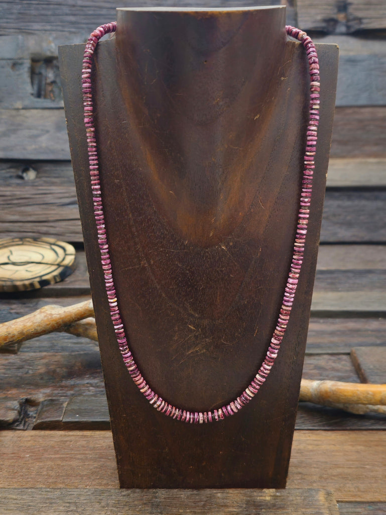 Lightly Graduated Purple Spiny Necklace with Heishi and a 2 in. Chain Extender. All jewelry is handcrafted by Indigenous Artists.  Dimensions: L...