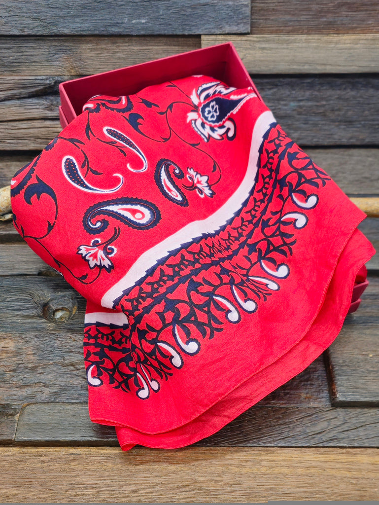 Loyal West Silk Bandana - Red 100% Silk.  Made in India.  Spot Clean.  Dimensions: 33 in. by 33 in.