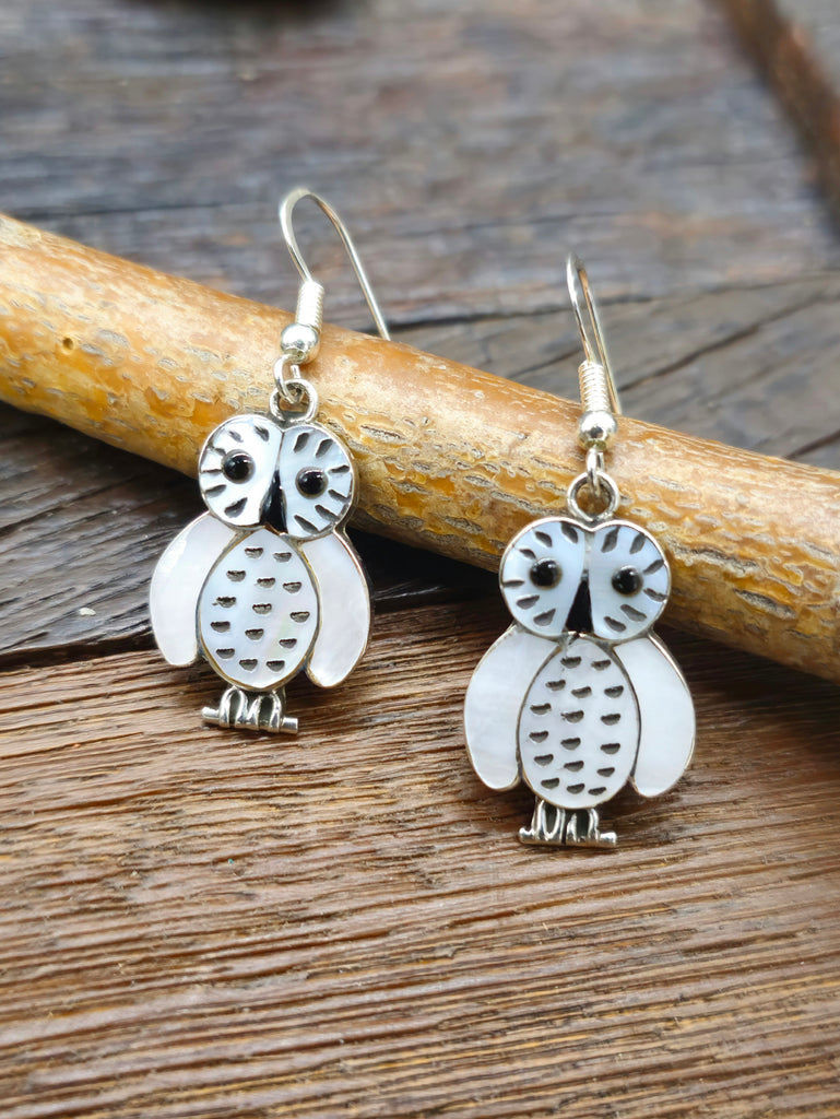 Mother of Pearl Inlay Owl Earrings by Regenda Kallestowa