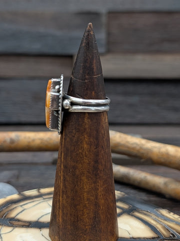 Orange Spiny Oyster Cross Ring by L. Archuleta Size 9