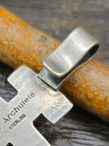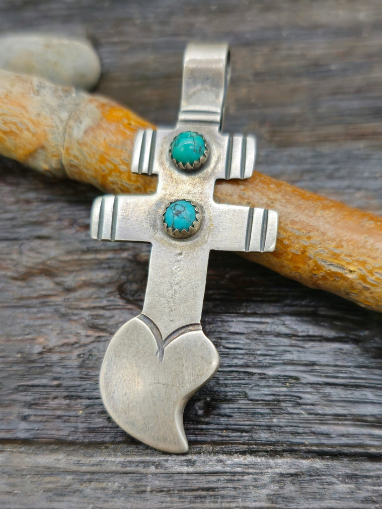 Oxidized Sterling Silver and Turquoise Dragonfly Pendant by by Navajo silversmith L. Archuleta.  Hangs on a shepherd's hook. Individual stones will...