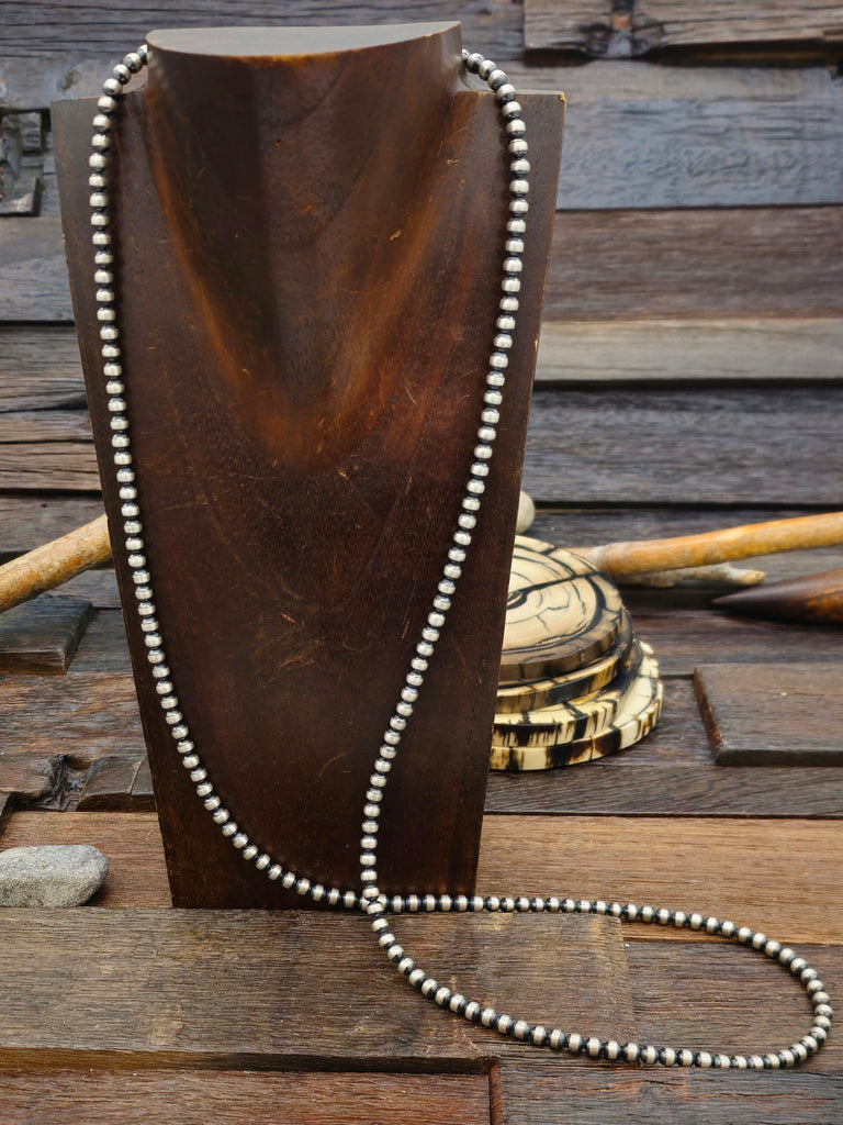 Oxidized Sterling Silver Bead Necklace. All jewelry is handcrafted by Indigenous Artists.  Dimensions: Length - 36 in.  Bead - 5 mm.