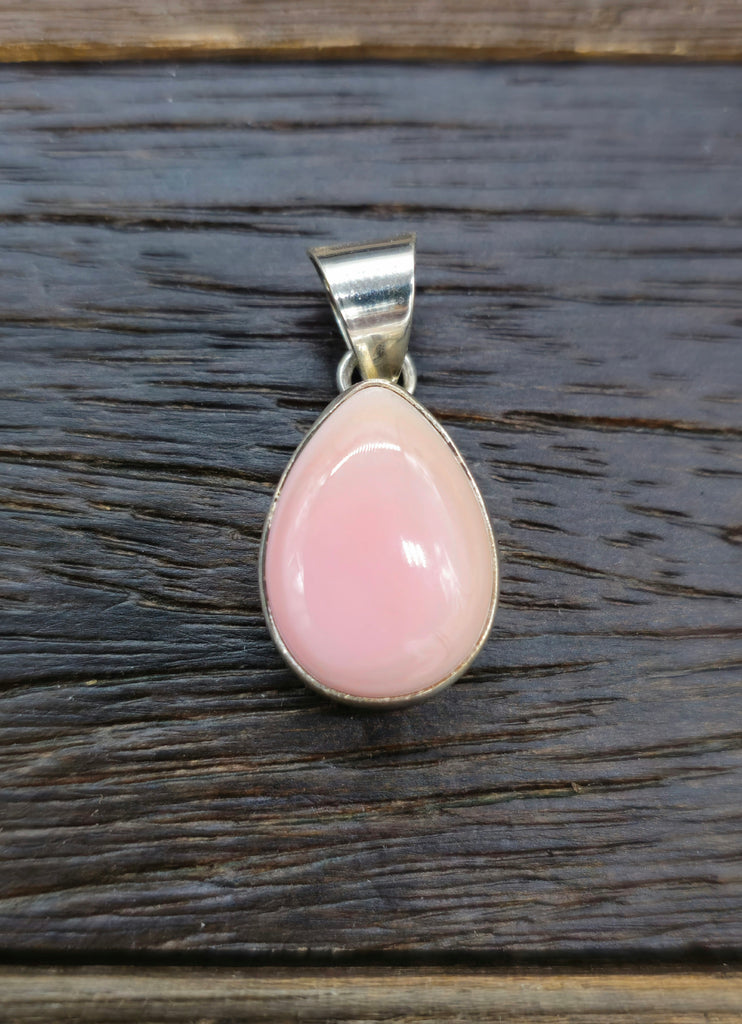 Pink Conch Teardrop Pendant Straight Bezel 1 in All jewelry is handcrafted by Indigenous Artists.  Dimensions: 1 by 1/2 in