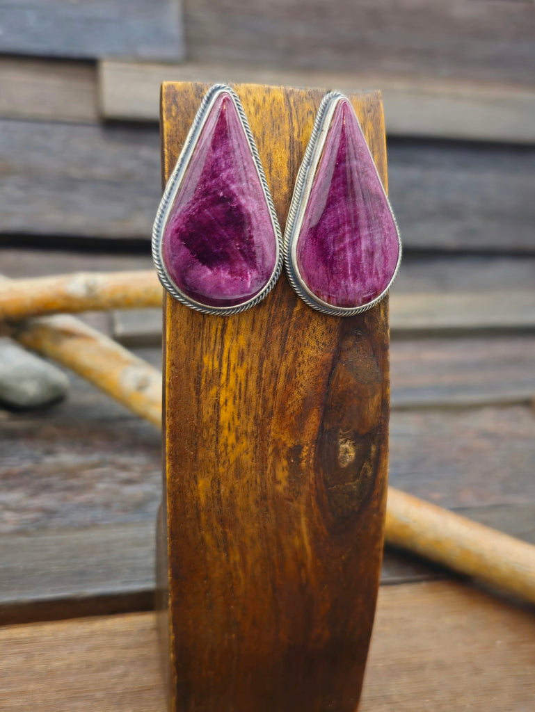 Purple Spiny Post Earrings by Navajo silversmith Kathleen Livingston. All jewelry is handcrafted by Indigenous Artists.  Dimensions: 1 1/2 in. b...