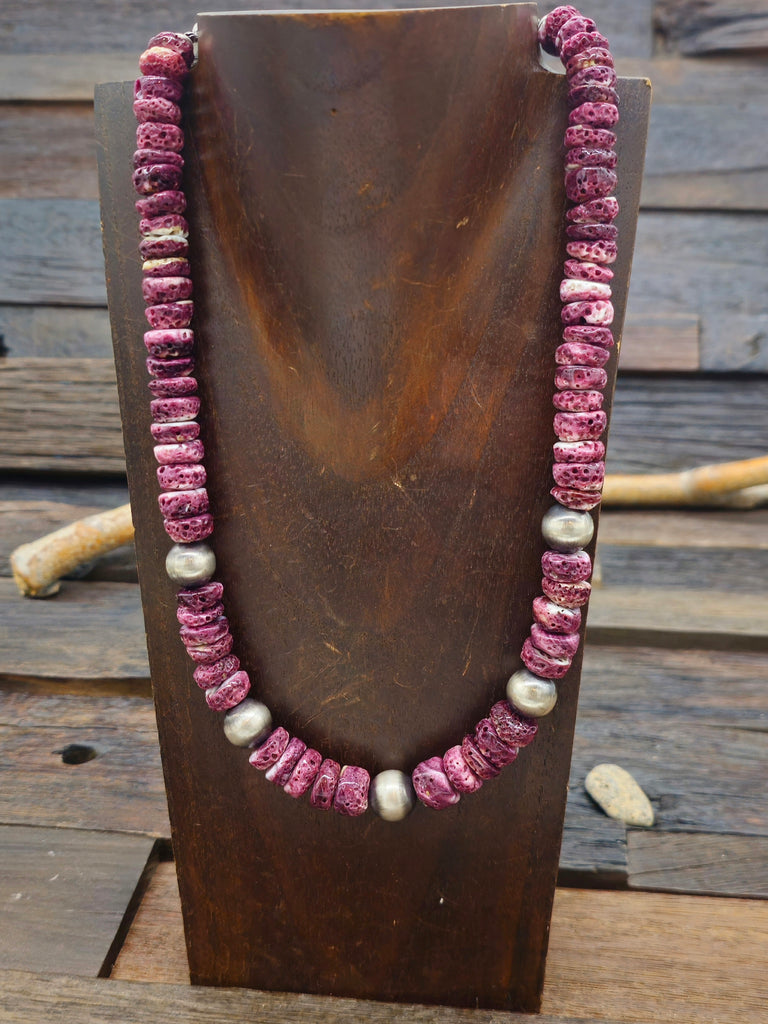 Purple Spiny Oyster and Sterling Silver Bead Necklace by Mary Salazar  All jewelry is handcrafted by Indigenous Artists.  Dimensions: Length - 2...