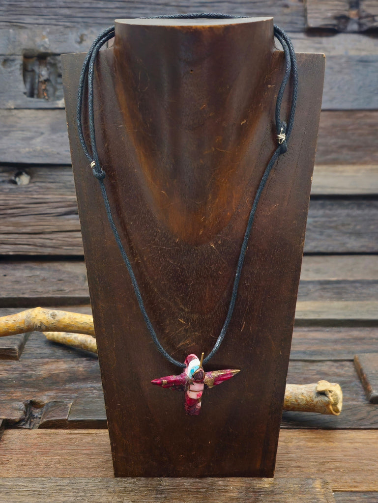 Red Hummingbird Necklace on Adjustable Cord by Matt Mitchell - 26 in.