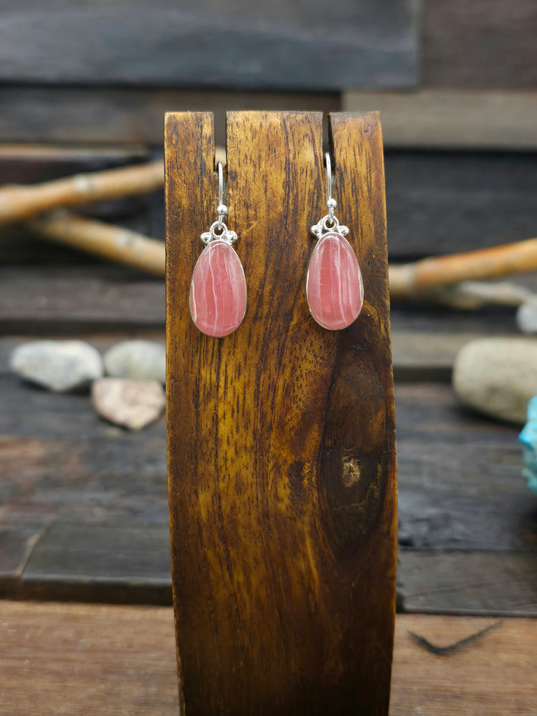Rhodochrosite Sterling Silver Hook Earrings by Navajo silversmith Cathy Webster. All jewelry is handcrafted by Indigenous Artists.  Dimensions: ...